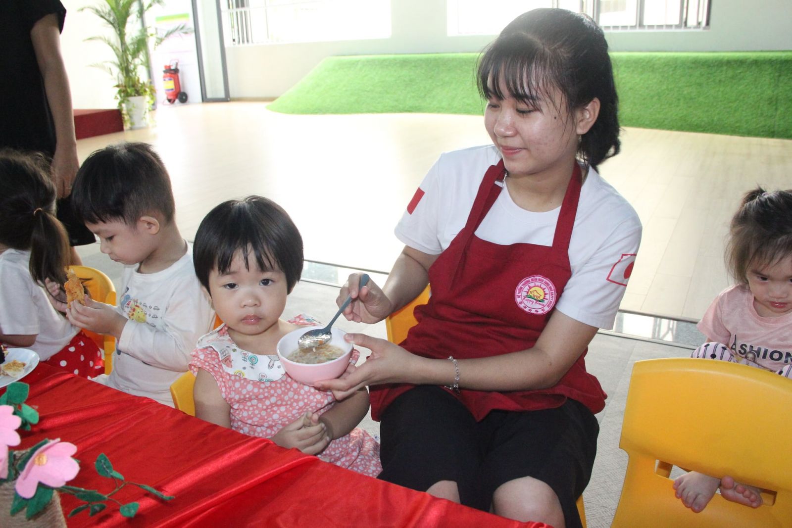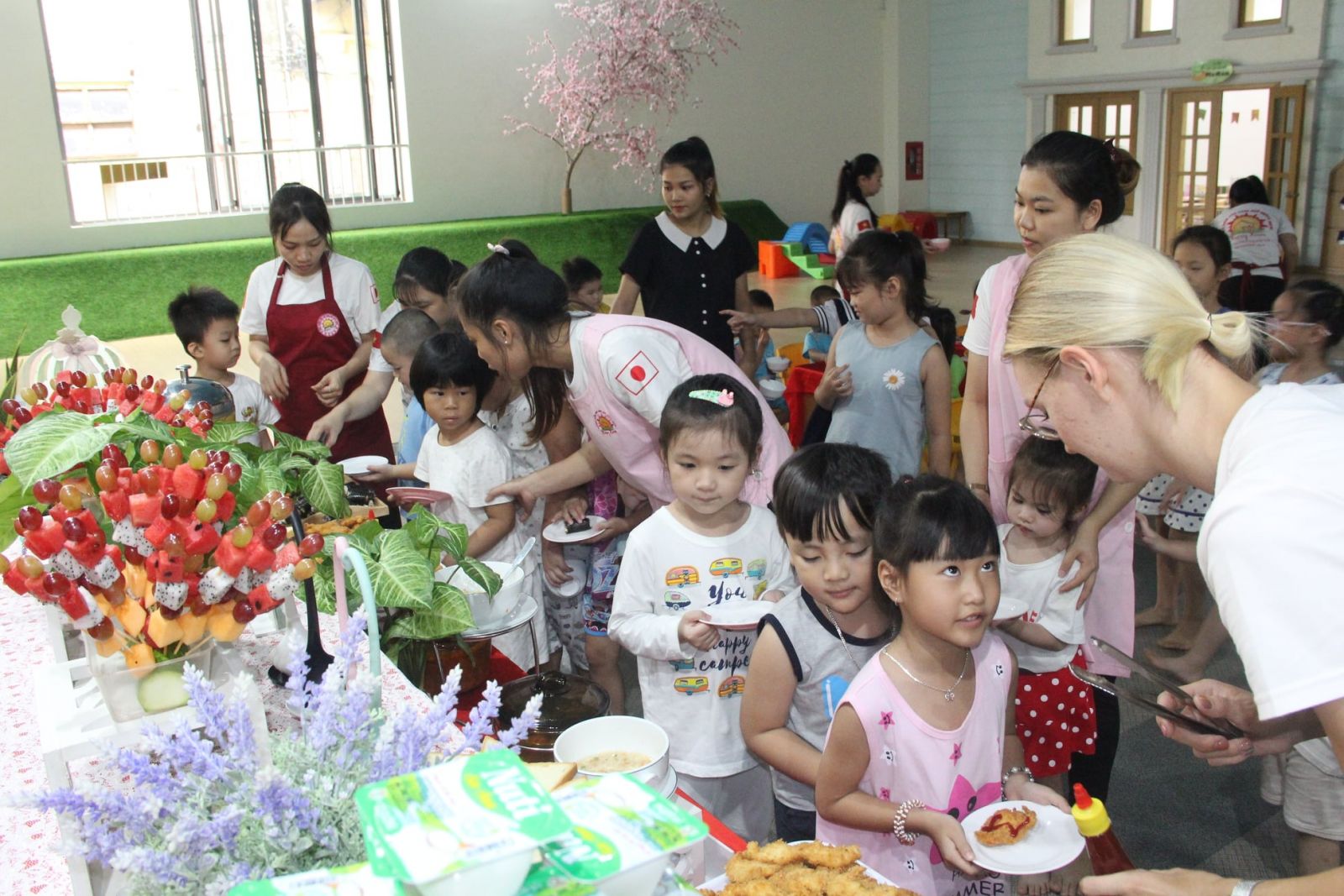 Trong chuỗi các hoạt động của “Lễ hội Setsubun – Lễ hội ném đậu”,trải nghiệm tiệc buffet là một trong những hoạt động được các bé mong chờ nhất. Đến với bữa tiệc, các bé của HappyHouse 3 đã trải nghiệm nét văn hóa ẩm thực hết sức đặc trưng của Nhật Bản. Các con được thưởng thức những món ăn đặc trưng của xứ sở Hoa Anh Đào như: Tonkatsu, Yaourt đậu đỏ, Soup miso… nhưng món ăn mang đến sự thích thú nhất cho các con là những cuộn Norimaki sushi may mắn – đây là món ăn không thể thiếu trong “Lễ hội Setsubun”, bảy vị trong cuộn sushi đều tượng trưng cho sự hạnh phúc, sức khỏe và sự thịnh vượng. Thông qua những hoạt động trong Lễ hội,các cô luôn mong những điều may mắn và hạnh phúc nhất sẽ luôn đến với các con và đại gia đình Happyhouse.