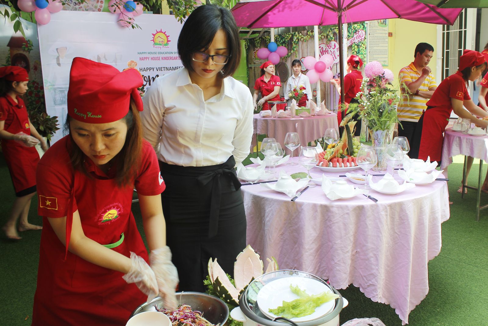 Ngày 20/10, trường Mầm non Happy House CS Vườn Lài tổ chức Hội thi nấu ăn với chủ đề “Ấm áp yêu thương” để chào mừng ngày Phụ nữ Việt Nam. Hội thi được diễn ra trong không khí vui nhộn, ấm áp tình yêu thương của các thành viên trong trường. Sau 30 phút trổ tài, các đội đã thể hiện sự khéo léo, sáng tạo thông qua cách trình bày vô cùng sinh động và đẹp mắt. Các món ăn không những vừa đa dạng, vừa đẹp về thẩm mỹ, ngon về chất lượng mà còn đảm bảo vệ sinh an toàn thực phẩm. Bên cạnh đó, các đội thi còn có phần thuyết trình thật ý nghĩa. Và thông qua hoạt động này đã giúp cho tất cả các thành viên trong trường có cơ hội giao lưu, gắn bó và hiểu nhau hơn.